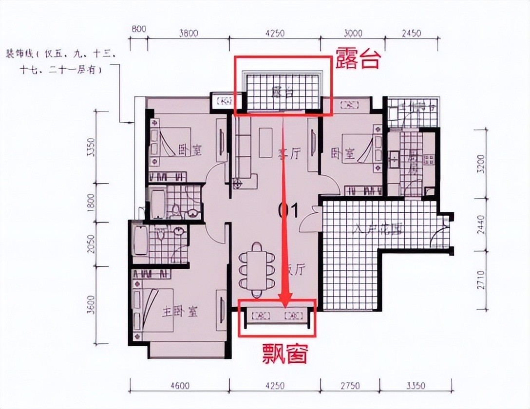 户型图上的3条杠就是窗户了,长短不一,短的是小窗户,长的是落地窗。