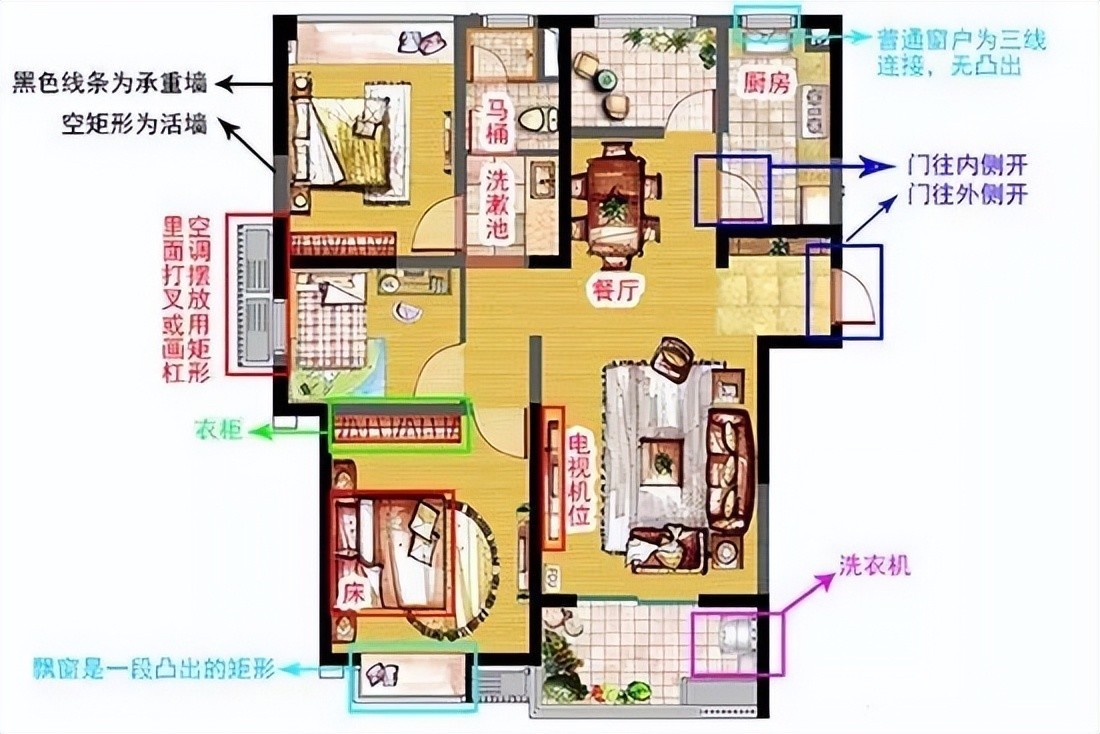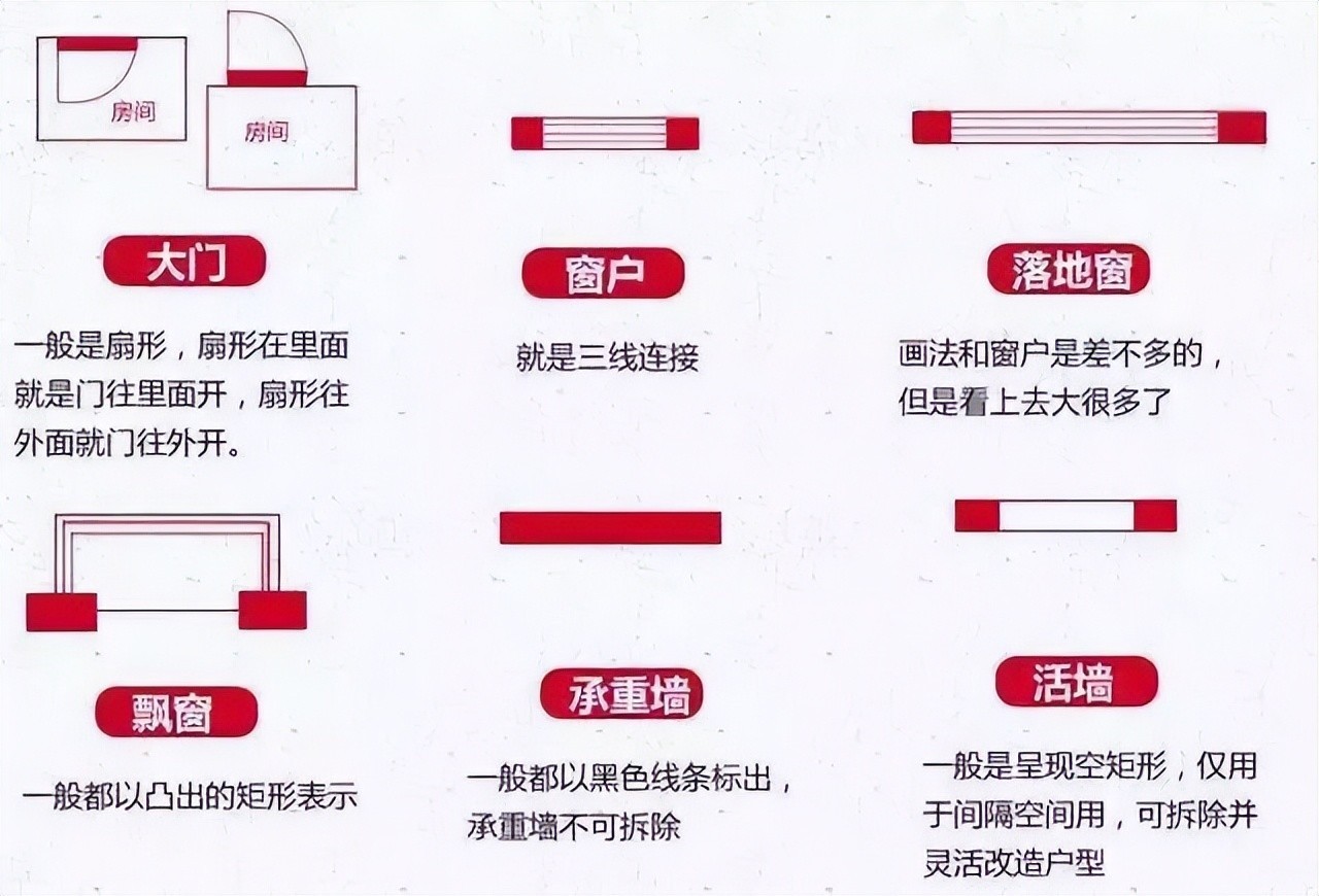 要想看懂户型图,就得先明白这些图标的意义。看一下这些直接的图标,可以更加直观。